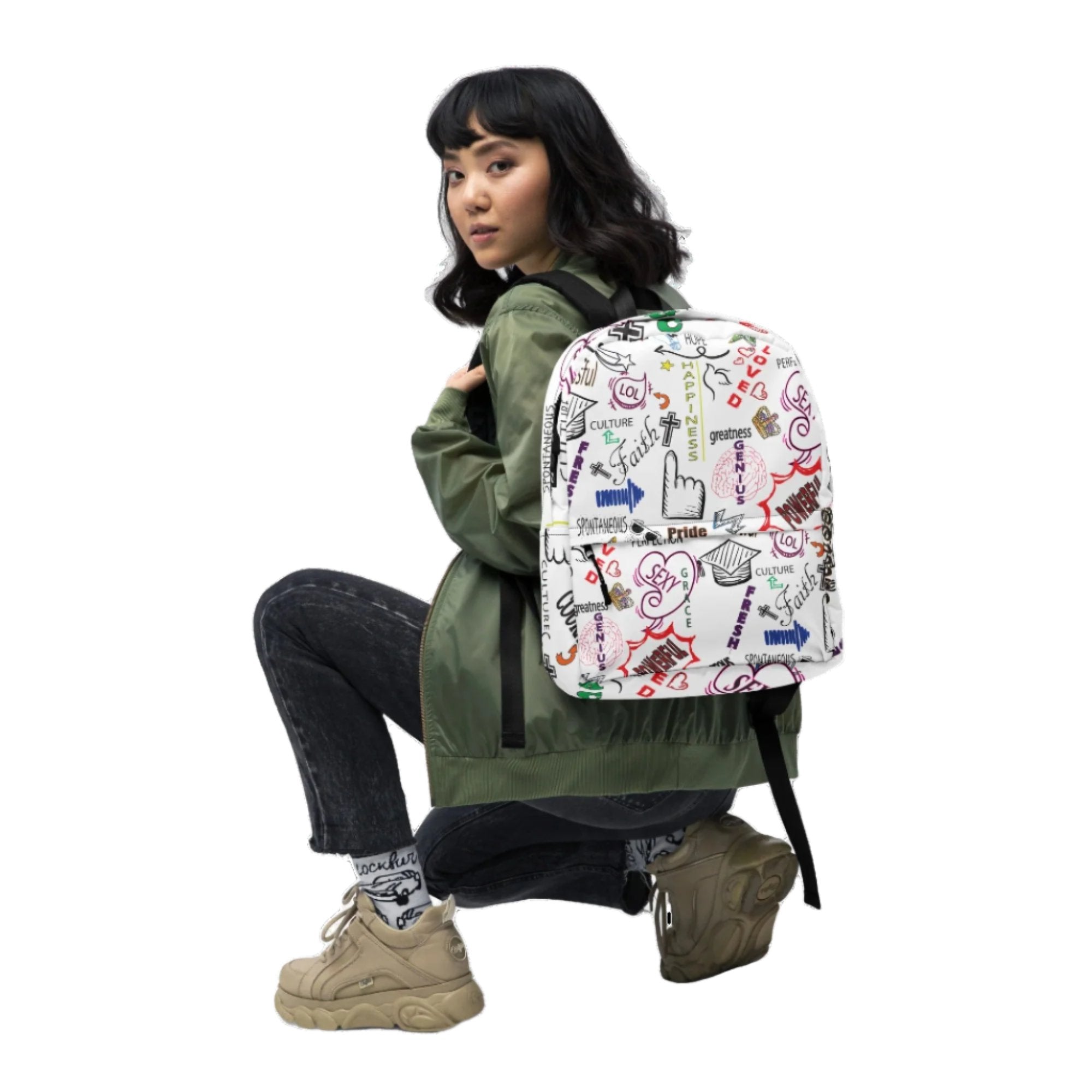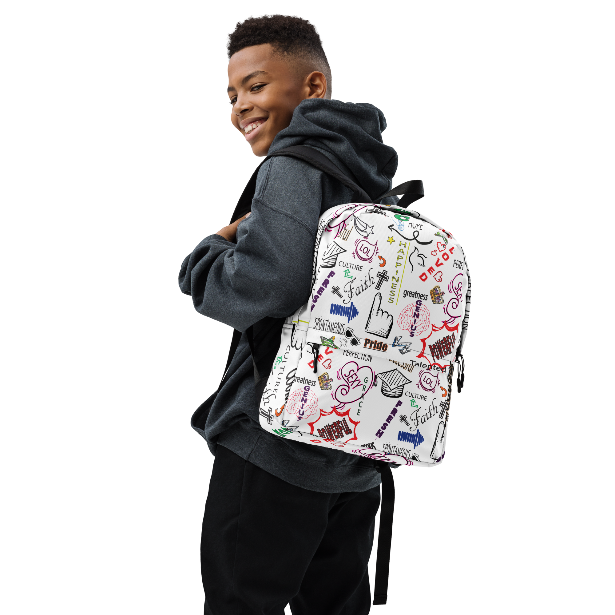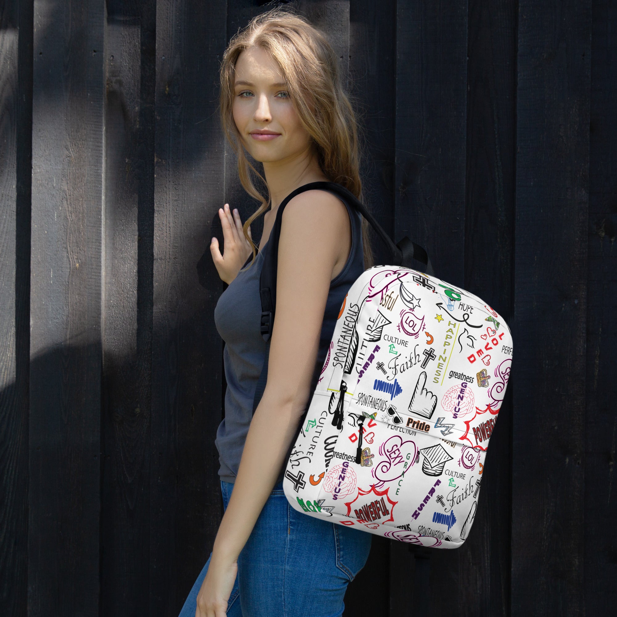 • Padded ergonomic bag straps from polyester with plastic strap regulators