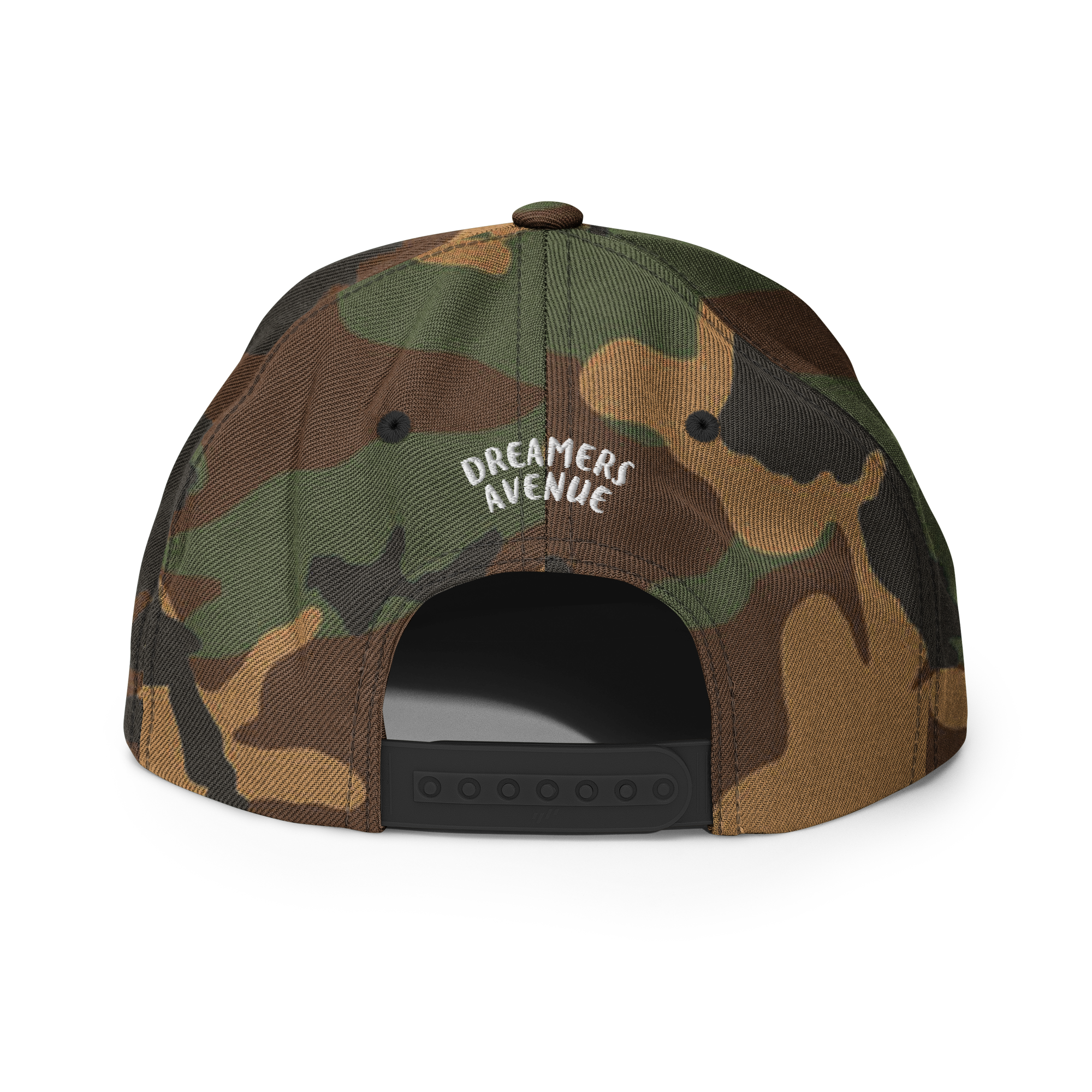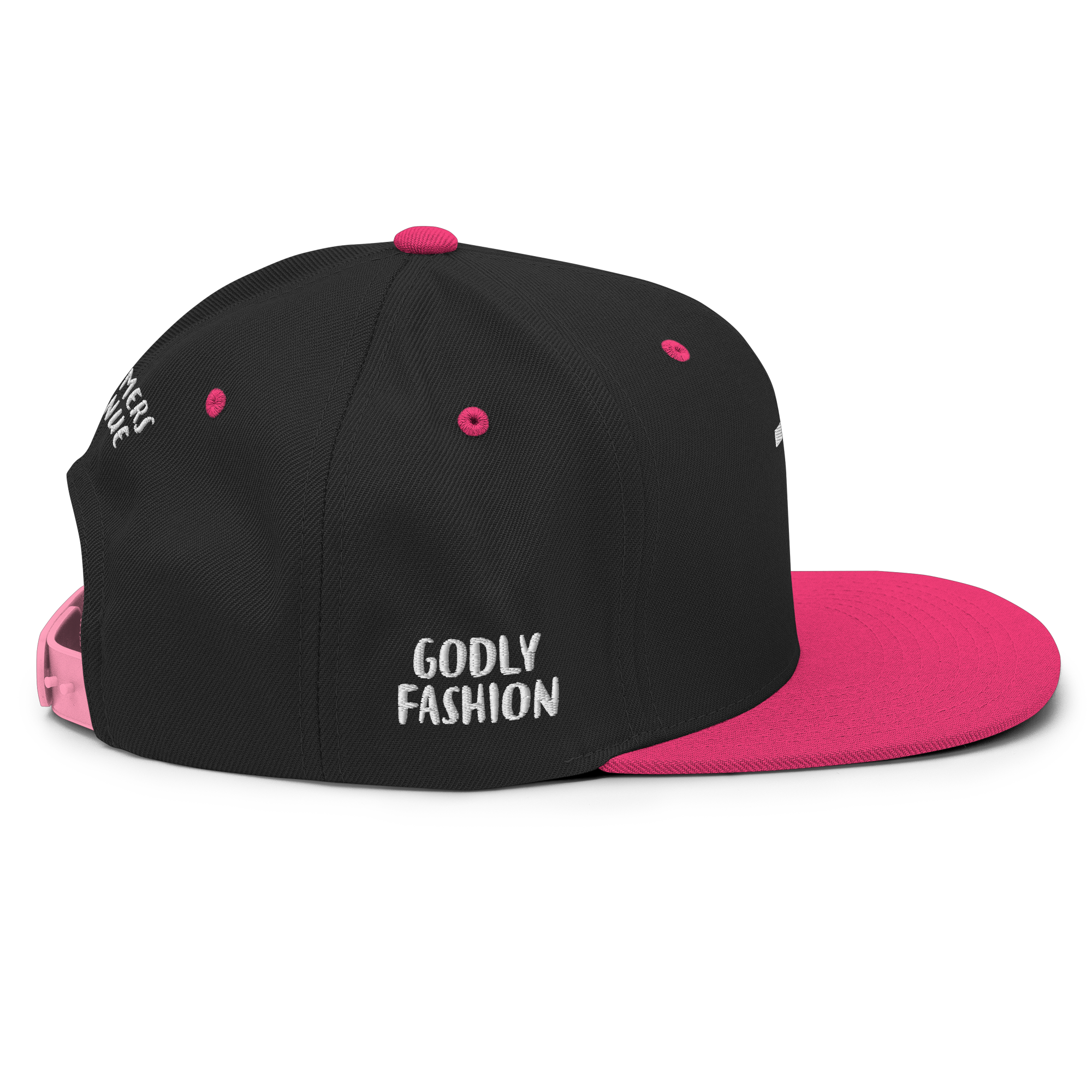 This hat is structured with a classic fit, flat brim, and full buckram. The adjustable snap closure makes it a comfortable, one-size-fits-most hat.